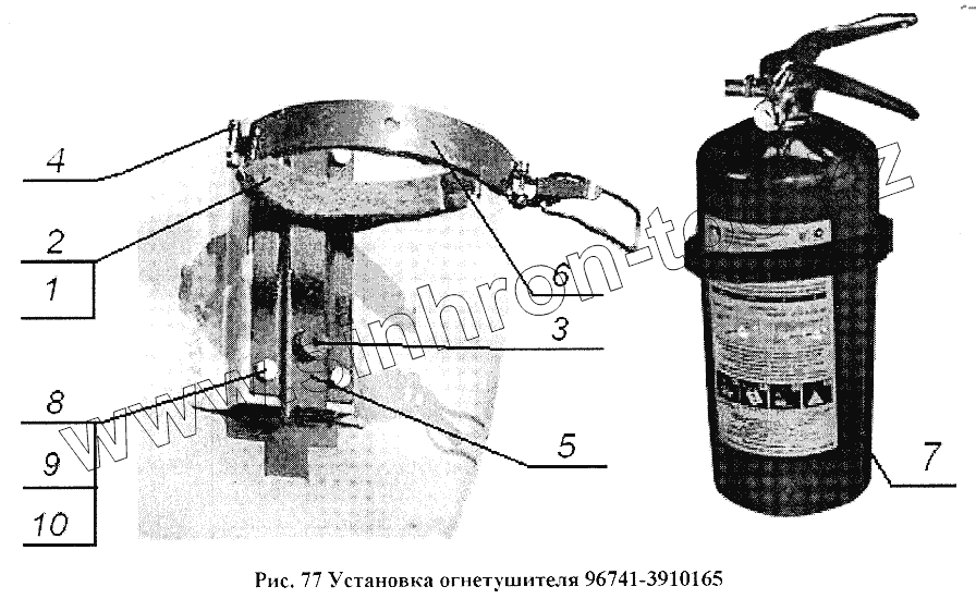 Каталог запасных частей к технике: Нефтекамский автозавод НефАЗ-96741. Установка огнетушителя 96741-3910165