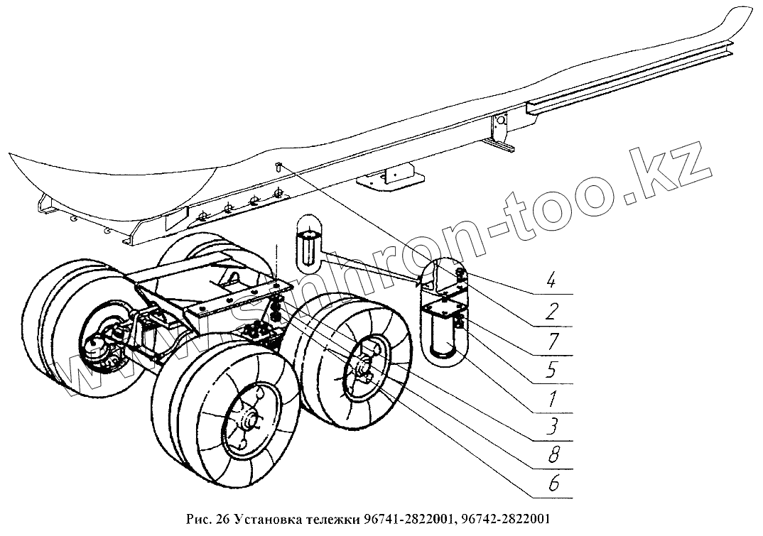 Каталог запасных частей к технике: Нефтекамский автозавод НефАЗ-96741. Установка тележки 96741-2822001, 96742-2822001