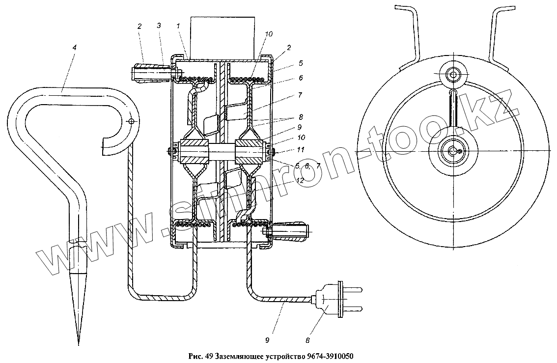 Каталог запасных частей к технике: Нефтекамский автозавод НефАЗ-96741. Заземляющее устройство 9674-3910050
