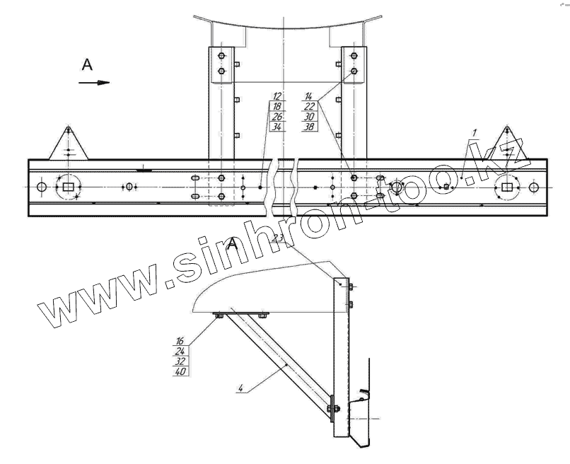 Каталог запасных частей к технике: Нефтекамский автозавод НефАЗ-96742. 96741-2804010 Установка заднего буфера