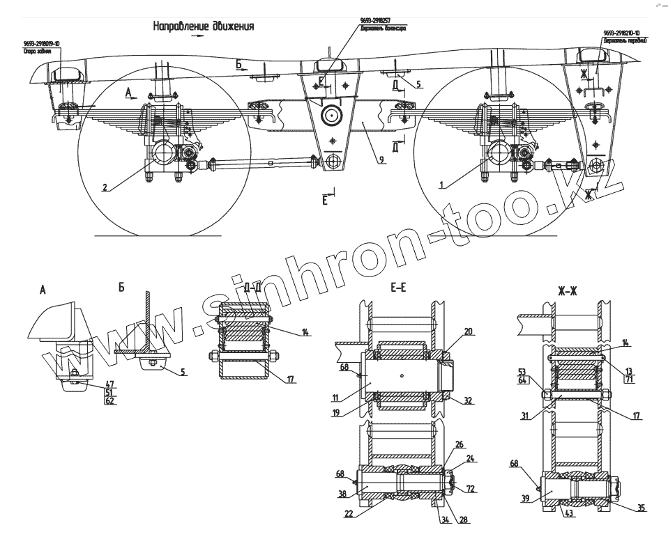 | 1 | 9693-2910005-15 | Ось с рессорами, штангами и колесами | |