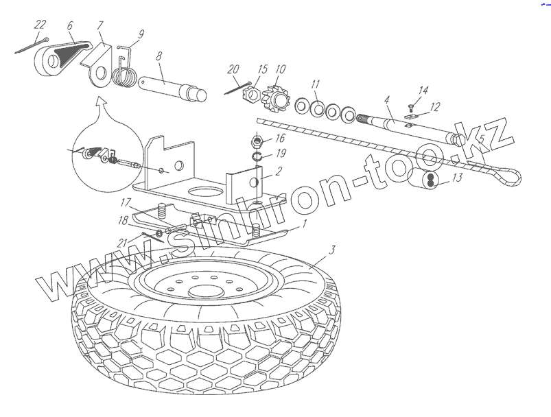 Каталог запасных частей к технике: Нефтекамский автозавод НефАЗ-96891-10. 9693-3105001 Установка запасного колеса