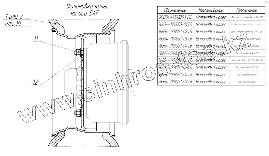 Каталог запасных частей к технике: Нефтекамский автозавод НефАЗ-96931-07. Установка колес 96894-3101003