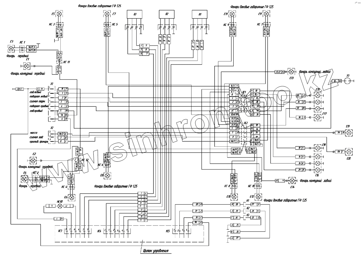 Каталог запасных частей к технике: Нефтекамский автозавод НефАЗ-9693-10. 9693-3700020Э4 Схема электрическая