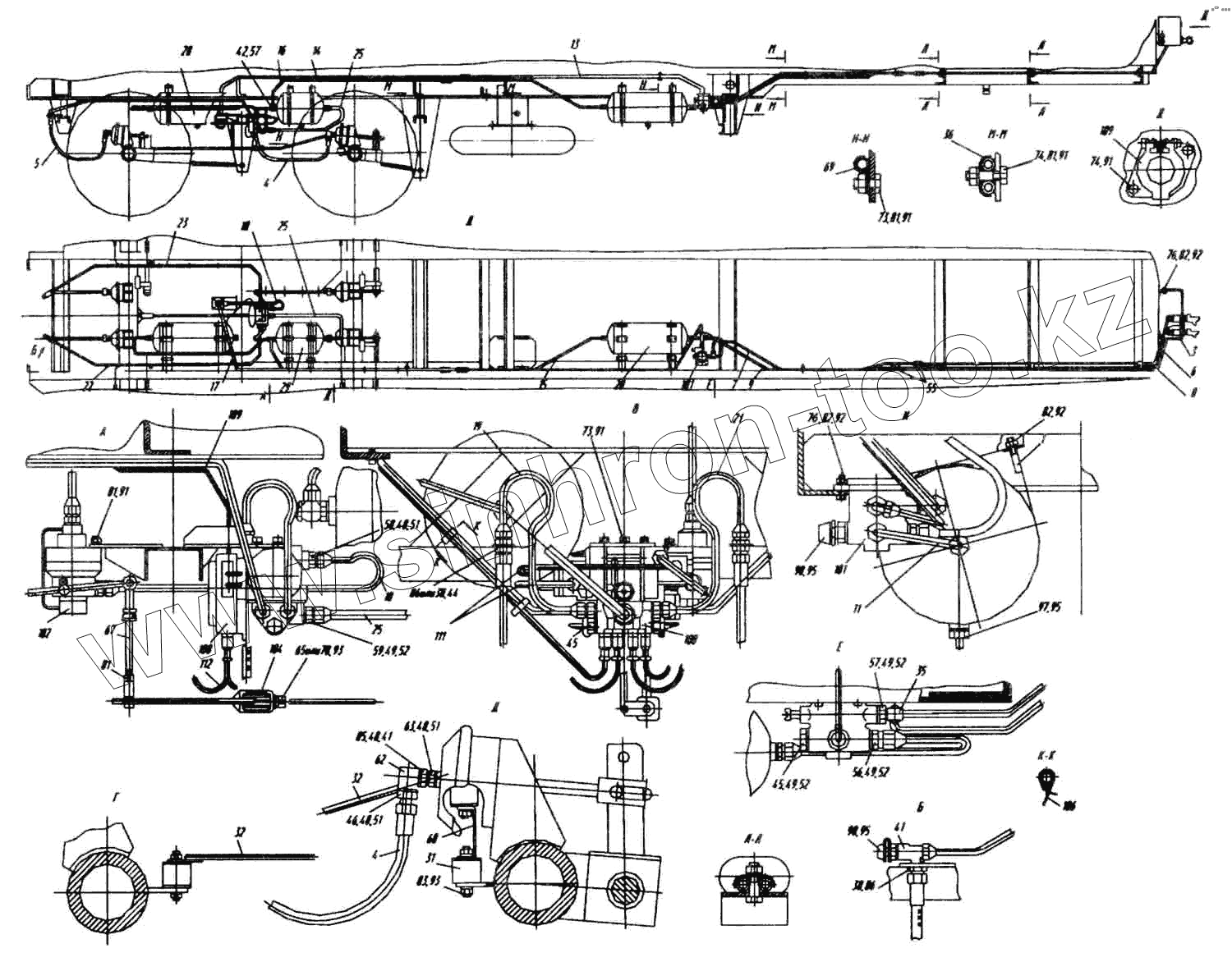 Каталог запасных частей к технике: Нефтекамский автозавод НефАЗ-9693. Привод пневматический тормозов с АБС