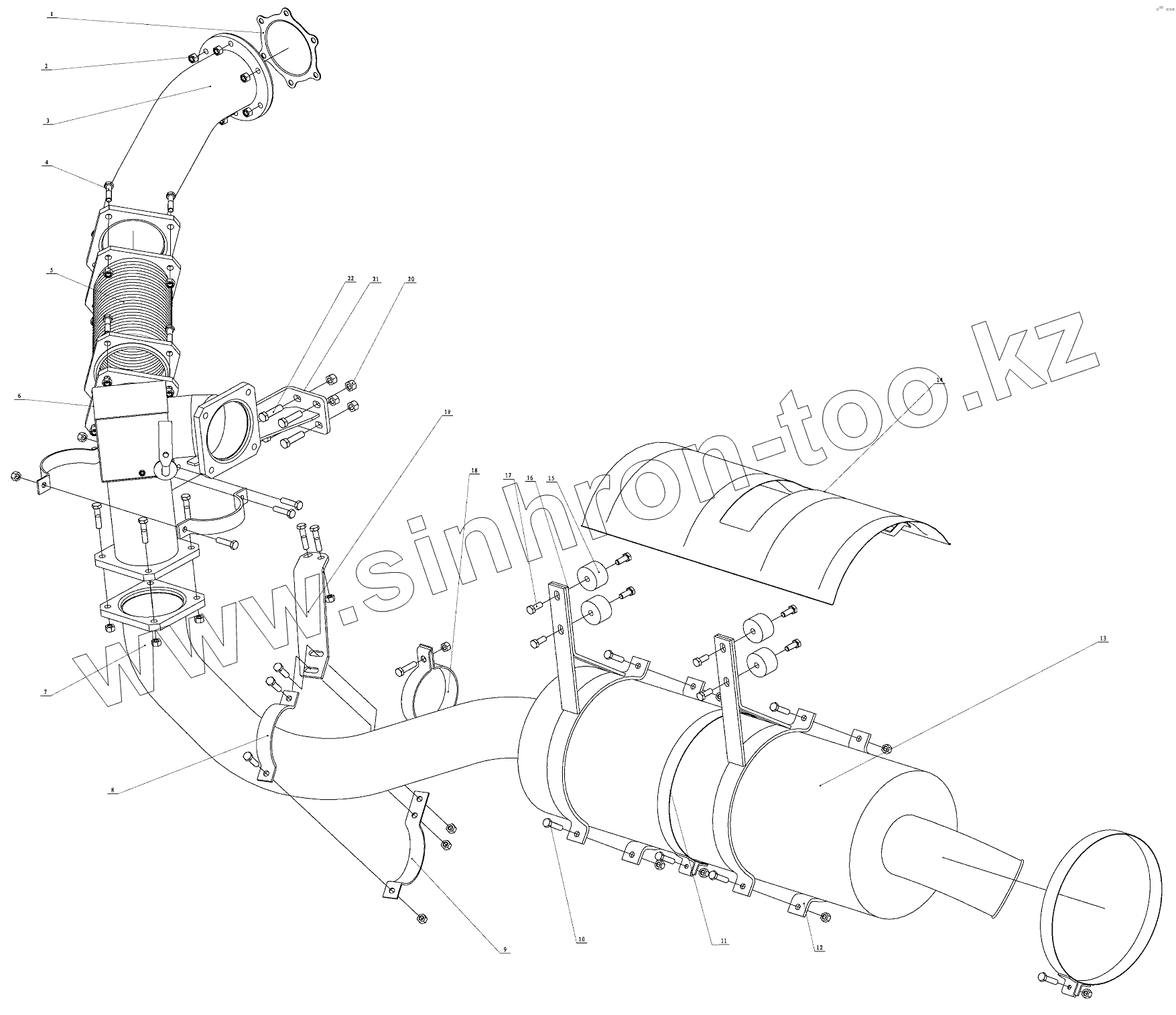 Каталог запасных частей к технике: Shaanxi DeLONG Е-3 (самосвал). Газоотвод и глушитель