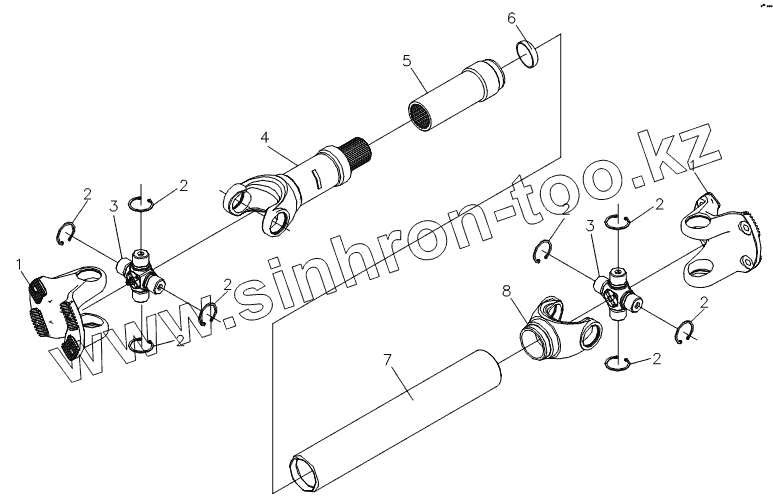 Каталог запасных частей к технике: Shaanxi DeLONG Е-3 (самосвал). Карданный вал
