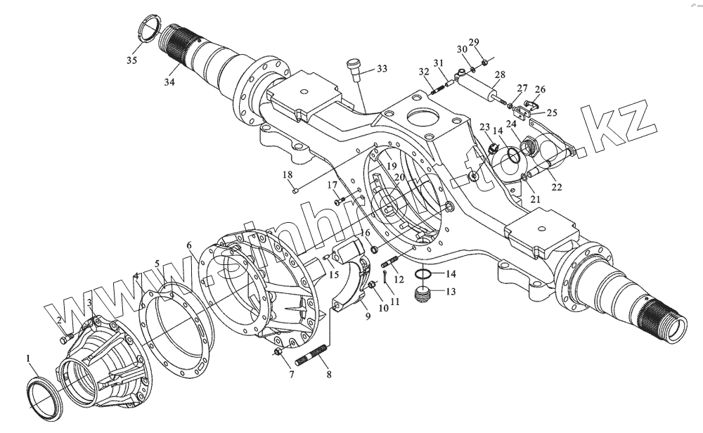 Каталог запасных частей к технике: Shaanxi DeLONG Е-3 (самосвал). Корпус заднего моста