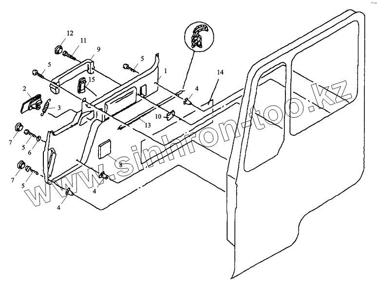 Каталог запасных частей к технике: Shaanxi DeLONG Е-3 (самосвал). Облицовочная панель левой двери
