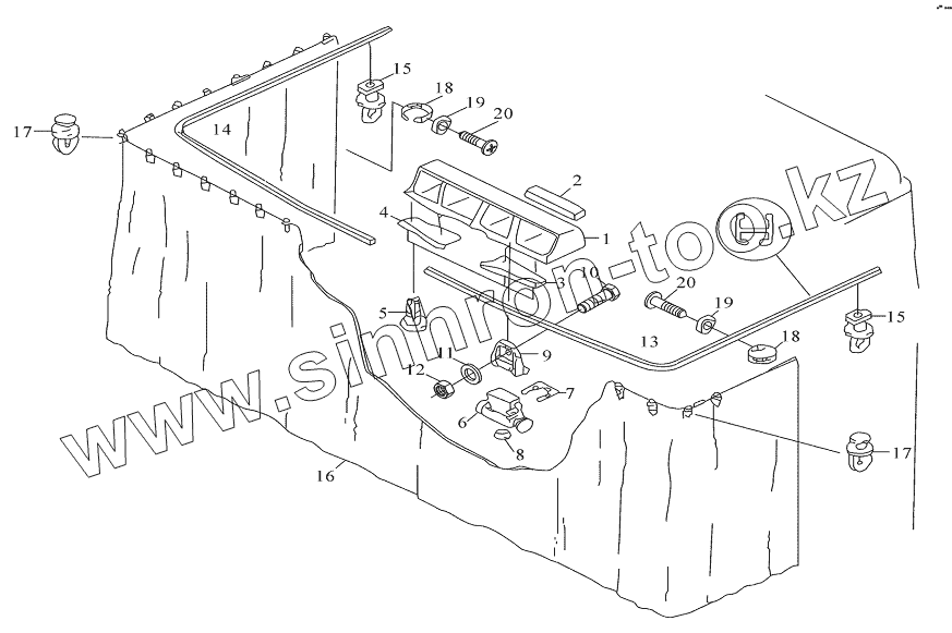 Каталог запасных частей к технике: Shaanxi DeLONG Е-3 (самосвал). Окружающая шторка и крепление