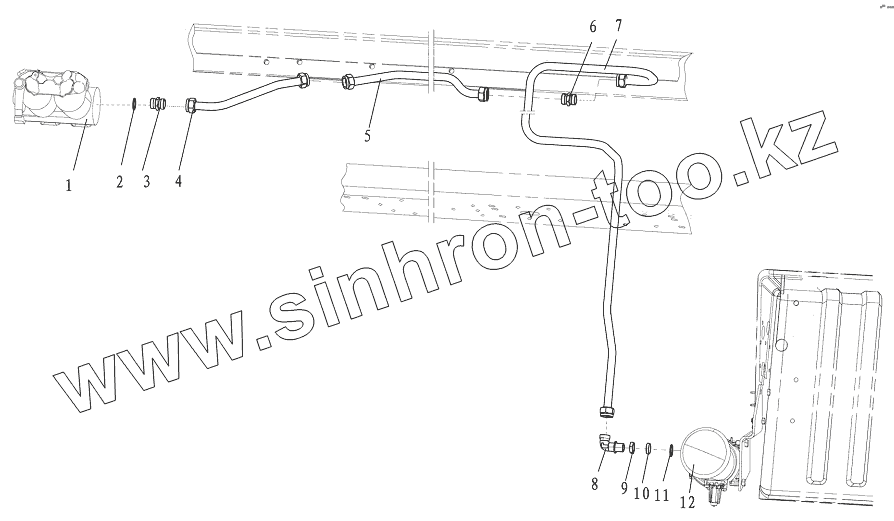 Каталог запасных частей к технике: Shaanxi DeLONG Е-3 (самосвал). Пневмопровода воздушного компрессора