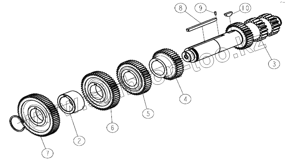 Каталог запасных частей к технике: Shaanxi DeLONG Е-3 (самосвал). Промежуточный вала в сборе