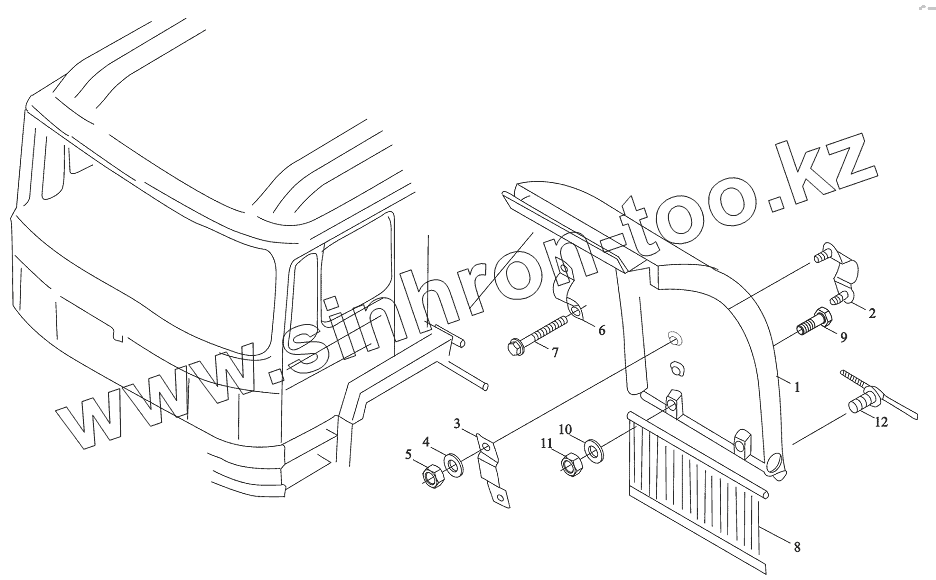 Каталог запасных частей к технике: Shaanxi DeLONG Е-3 (самосвал). Заднее крыло кабины левое