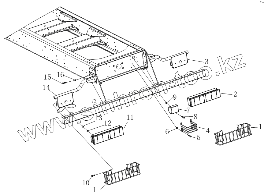 Каталог запасных частей к технике: Shaanxi DeLONG Е-3 (самосвал). Задние фонари и Кронштейн фонаря