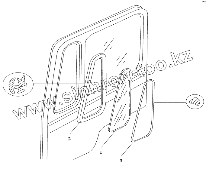 Каталог запасных частей к технике: Shaanxi DeLONG Е-3 (тягач). Форточка левой двери