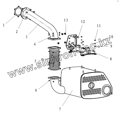 Каталог запасных частей к технике: Shaanxi DeLONG Е-3 (тягач). Газоотвод и глушитель