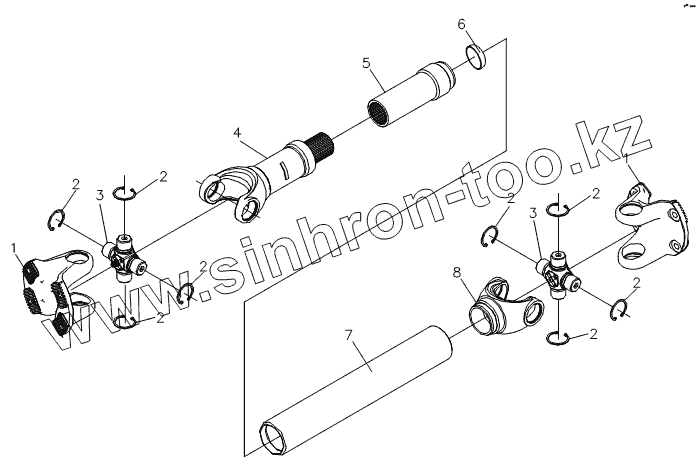 Каталог запасных частей к технике: Shaanxi DeLONG Е-3 (тягач). Карданный вал в сборе
