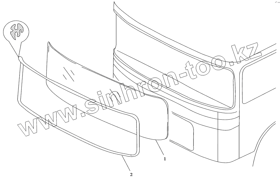 Каталог запасных частей к технике: Shaanxi DeLONG Е-3 (тягач). Лобовое стекло