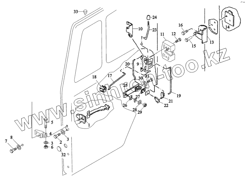 Каталог запасных частей к технике: Shaanxi DeLONG Е-3 (тягач). Ограничитель и механизм правой двери