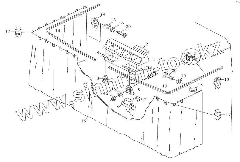 Каталог запасных частей к технике: Shaanxi DeLONG Е-3 (тягач). Окружающая шторка и крепление