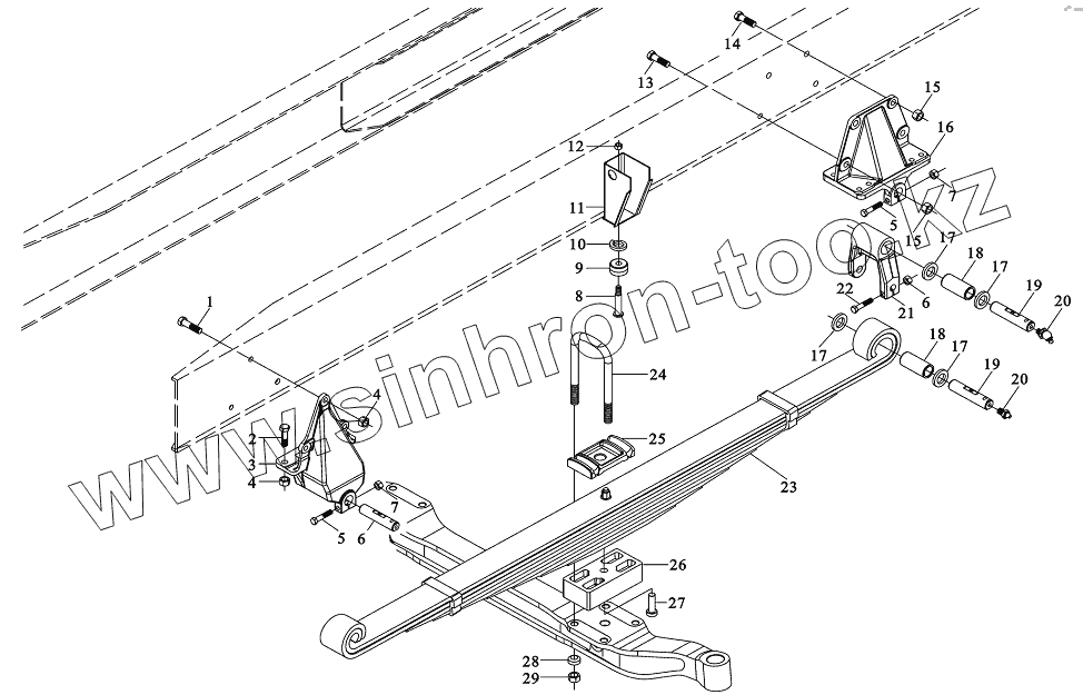 Каталог запасных частей к технике: Shaanxi DeLONG Е-3 (тягач). Передняя подвеска (4х2 6х4)