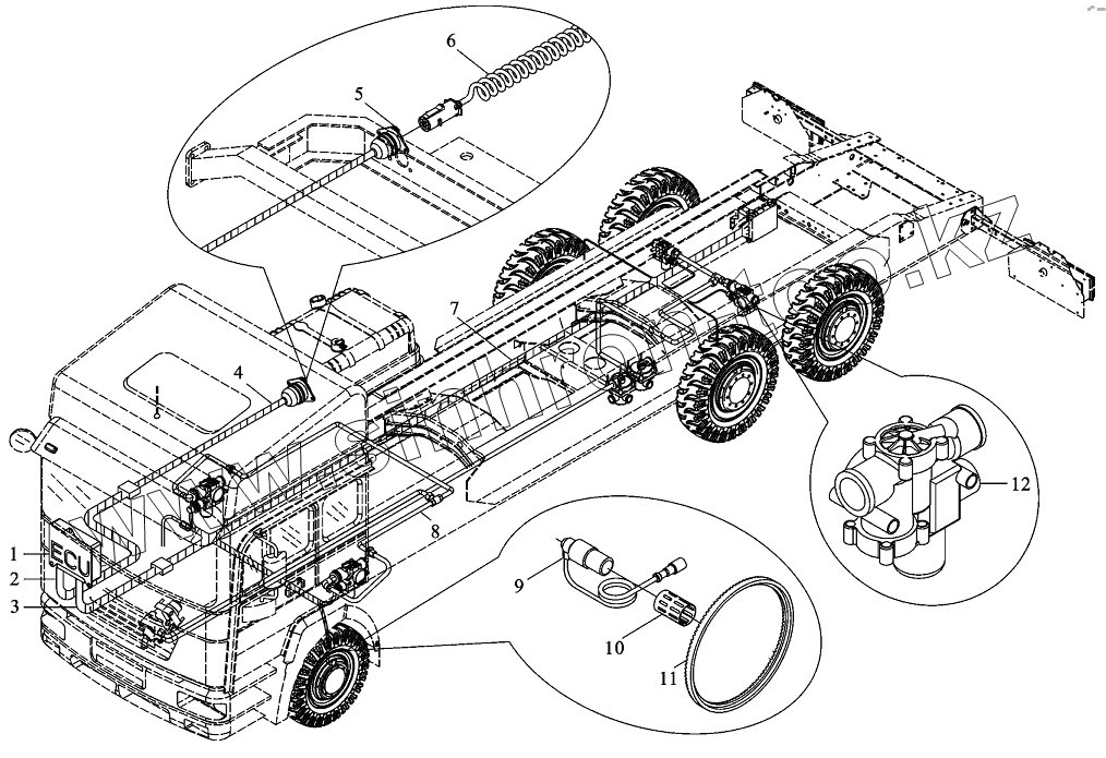 Каталог запасных частей к технике: Shaanxi DeLONG Е-3 (тягач). Система AБС для автомобиля 6х4