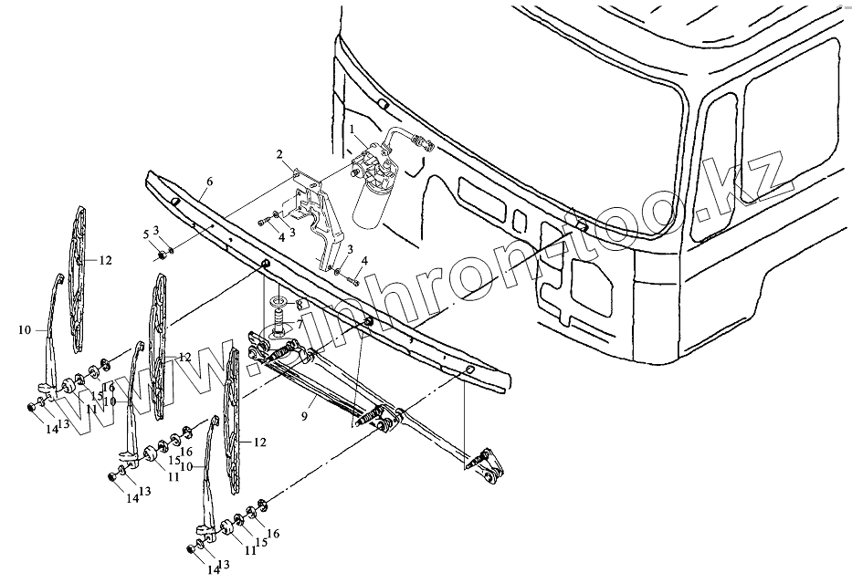Каталог запасных частей к технике: Shaanxi DeLONG Е-3 (тягач). Стеклоочиститель