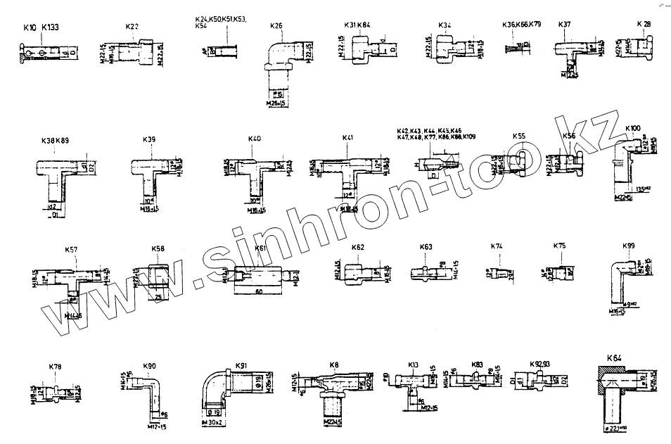 Каталог запасных частей к технике: Shaanxi DeLONG Е-3 (тягач). Трубные штуцеры
