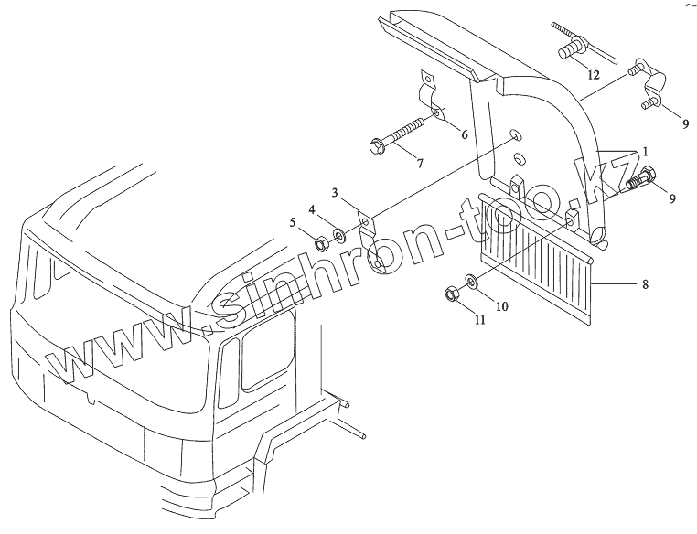 Каталог запасных частей к технике: Shaanxi DeLONG Е-3 (тягач). Заднее крыло кабины правое