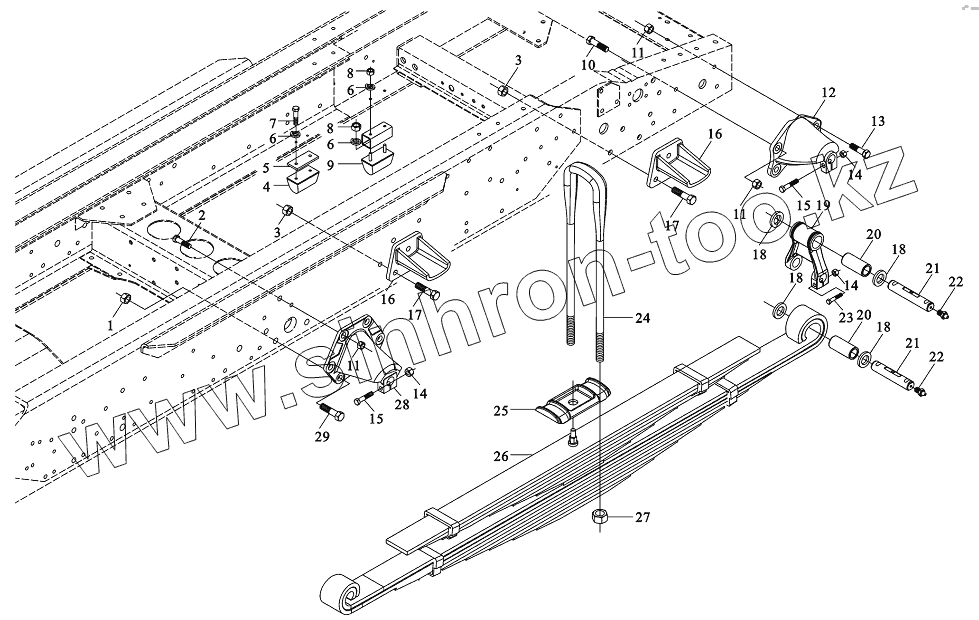 Каталог запасных частей к технике: Shaanxi DeLONG Е-3 (тягач). Задняя подвеска (4х2)