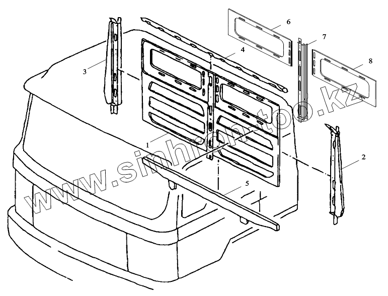 Каталог запасных частей к технике: Shaanxi DeLONG Е-3 (тягач). Задняя уплотнительная панель