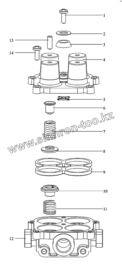 Каталог запасных частей к технике: Shaanxi MAN-F2000 (SX3254JS384). Четырехпроводный защитный клапан