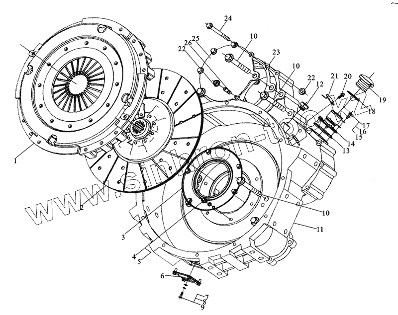 Каталог запасных частей к технике: Shaanxi MAN-F2000 (SX3254JS384). M3400-1600000 CLUTCH ASSY