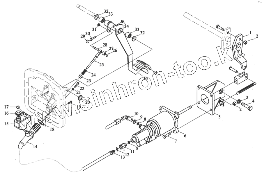 Каталог запасных частей к технике: Shaanxi MAN-F2000 (SX3254JS384). Механизм привода сцепления