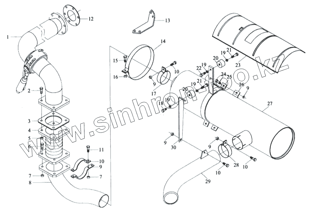 Каталог запасных частей к технике: Shaanxi MAN-F2000 (SX3254JS384). Система выпуска газов