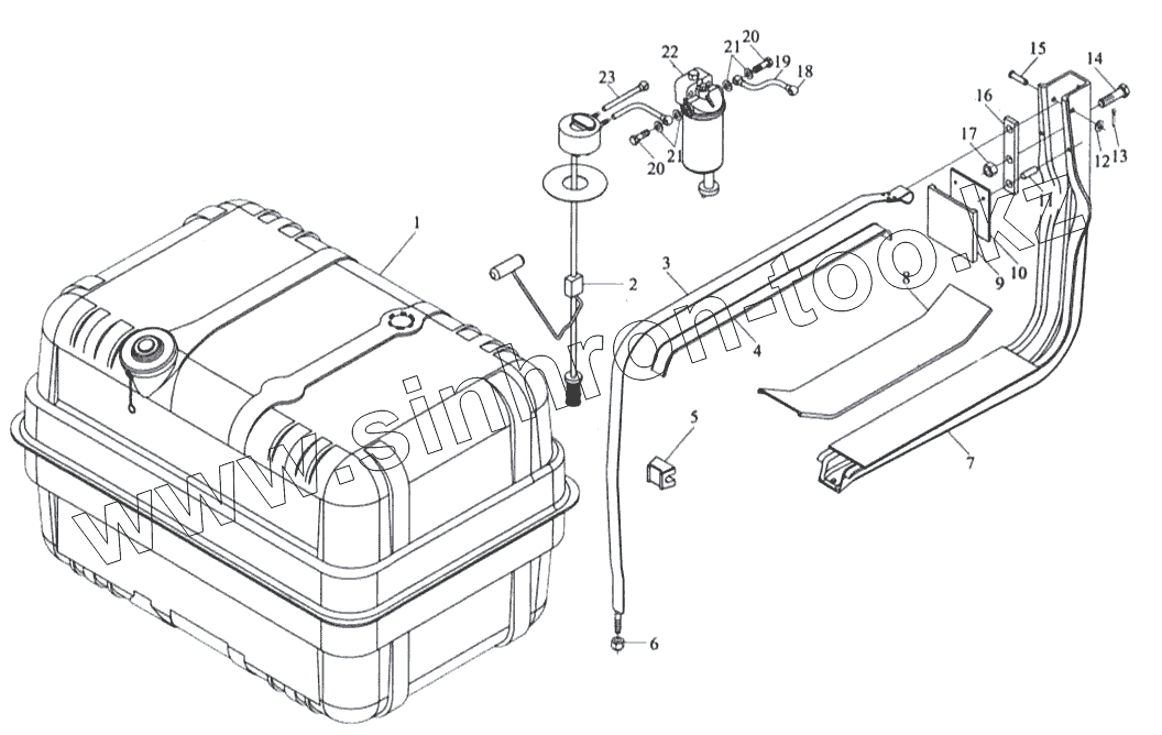 Каталог запасных частей к технике: Shaanxi MAN-F2000 (SX3254JS384). Топливный бак и топливопроводы