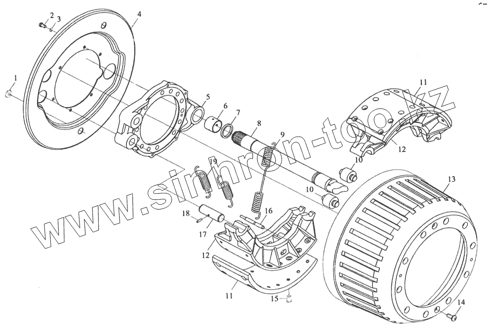 Каталог запасных частей к технике: Shaanxi MAN-F2000 (SX3254JS384). Тормоз заднего моста