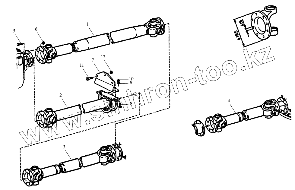Каталог запасных частей к технике: Shaanxi MAN-F2000 (SX3254JS384). Валы кардана в сборе