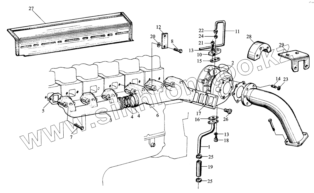 Каталог запасных частей к технике: Shaanxi MAN-F2000 (SX3254JS384). Впускной и выпускной коллектор