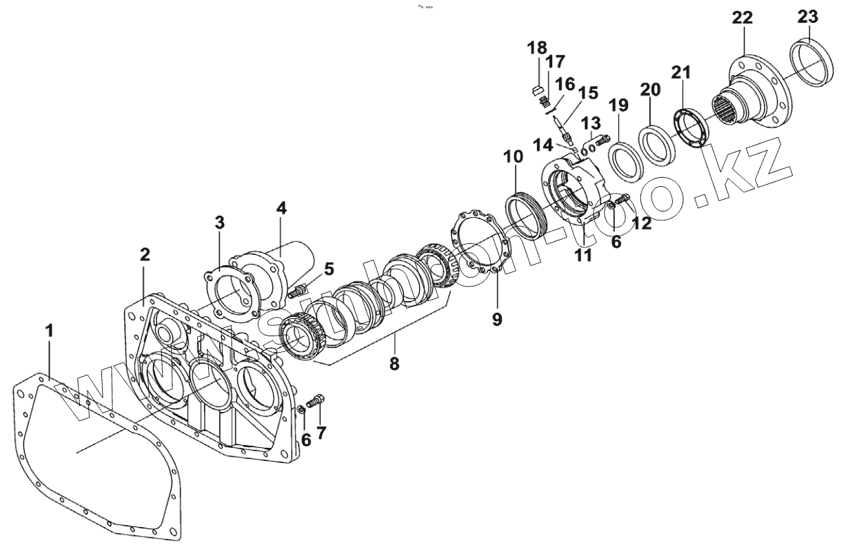 Каталог запасных частей к технике: Shaanxi Shacman F2000. 9JS135T-B REAR COVER ASSEMBLY
