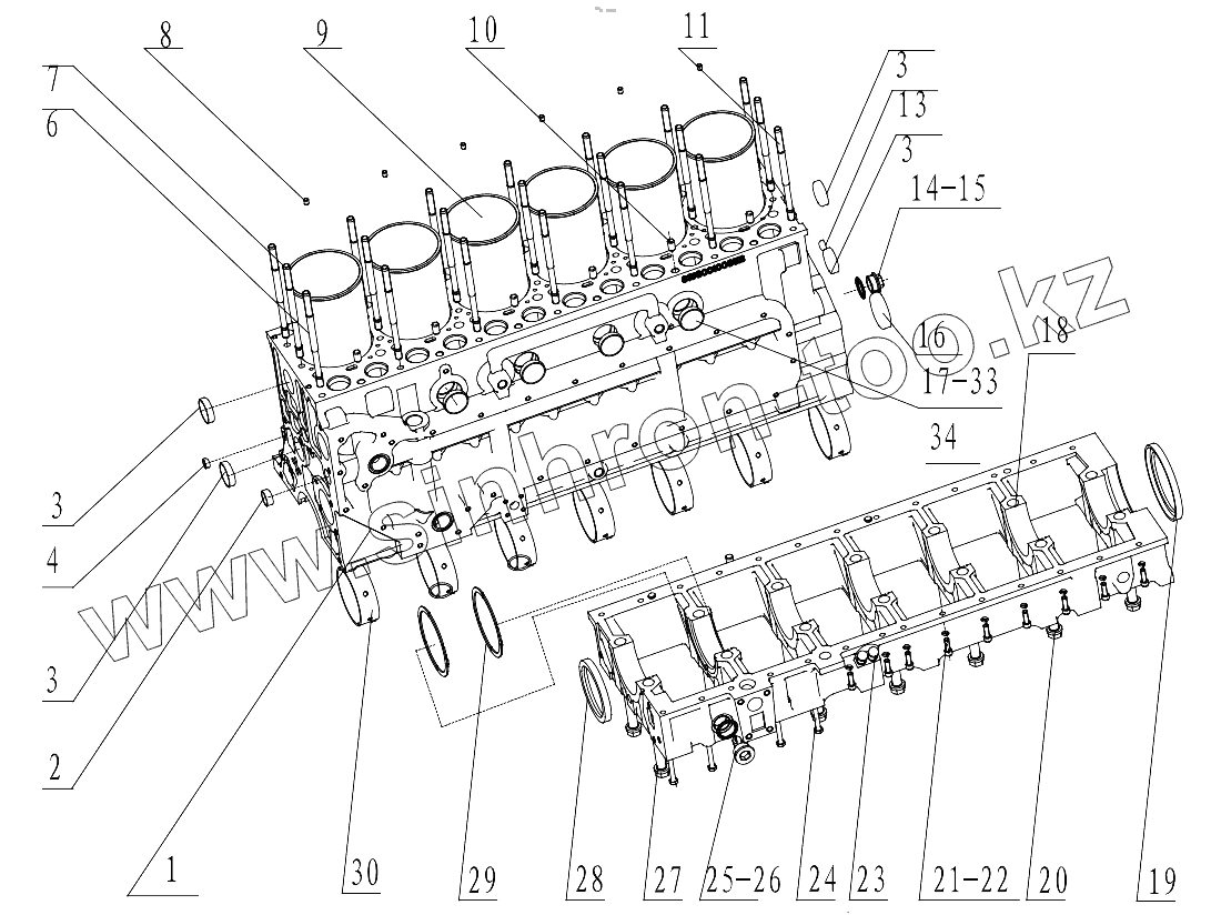 Каталог запасных частей к технике: Shaanxi Shacman F2000. A COMBINED ENGINE BODY GRP100010599