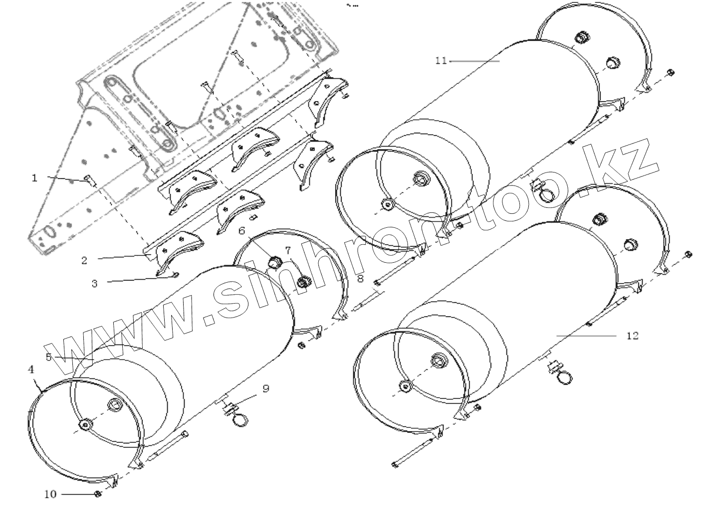 Каталог запасных частей к технике: Shaanxi Shacman F2000. AIR TANK FIXING (II)