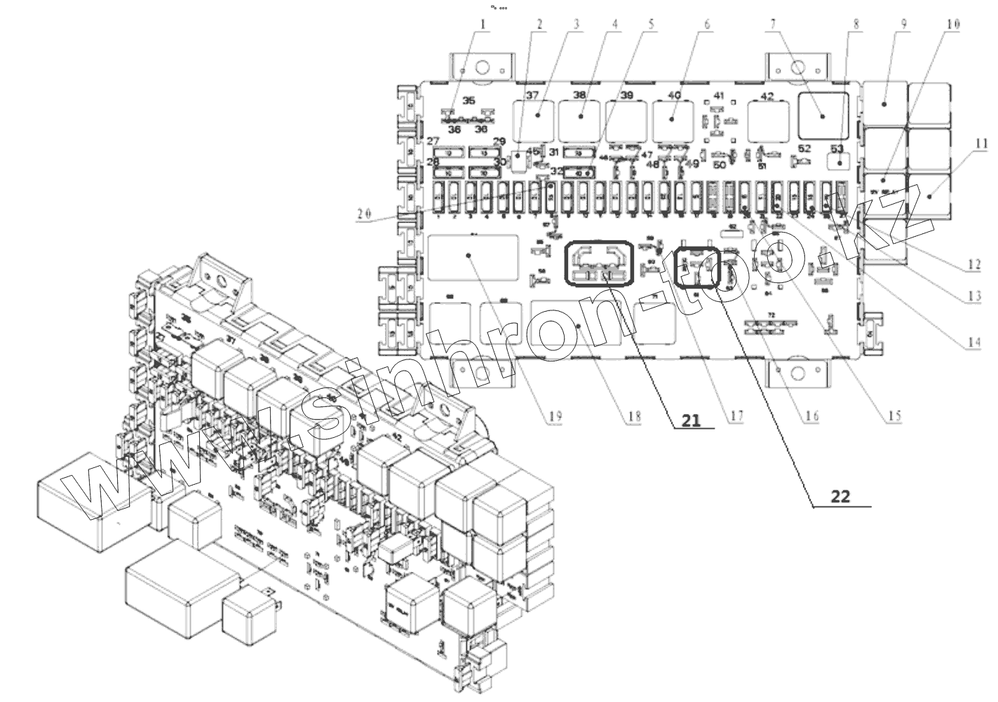 Каталог запасных частей к технике: Shaanxi Shacman F2000. CENTRAL ELECTRICAL DEVICE BOARD