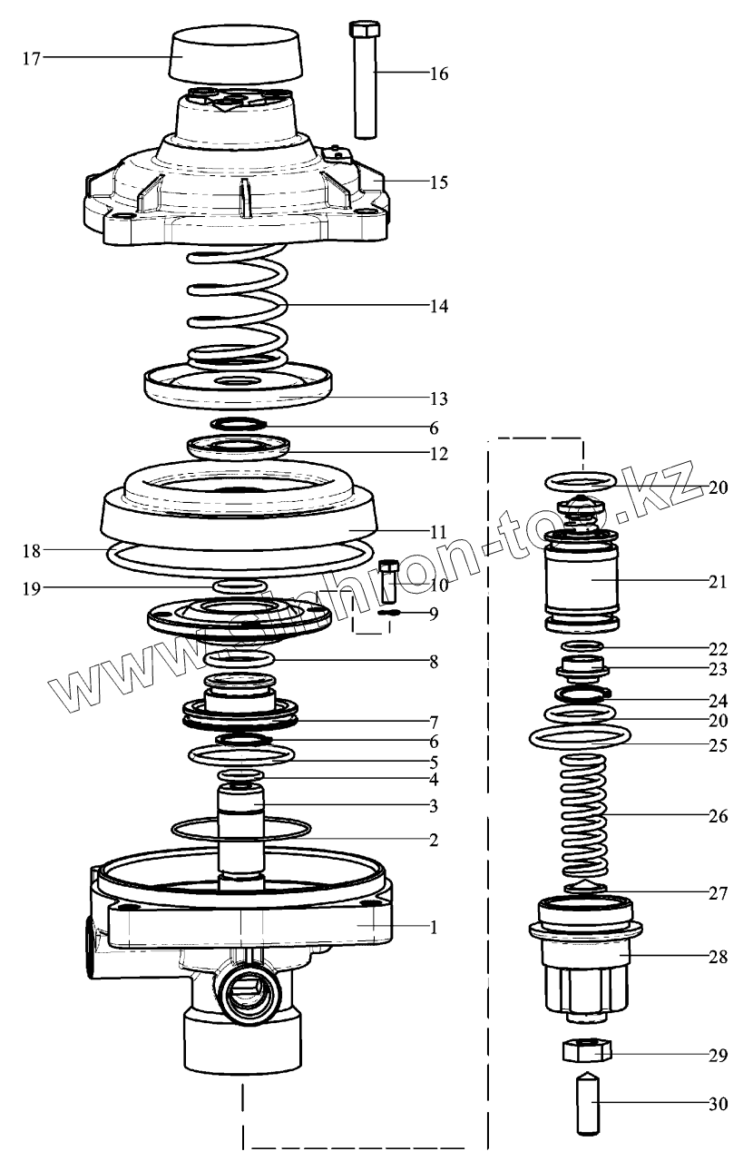 Каталог запасных частей к технике: Shaanxi Shacman F2000. CONTROL VALVE, TRAILER BRAKE