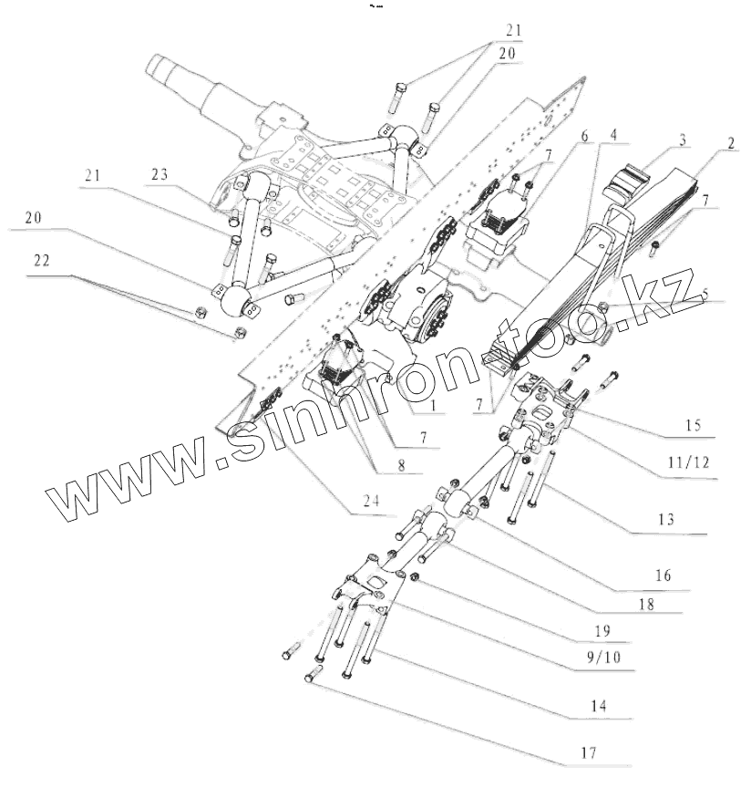 Каталог запасных частей к технике: Shaanxi Shacman F2000. ENGINNERING VEHICLE REAR SUSPENSION 6X4, 8X4