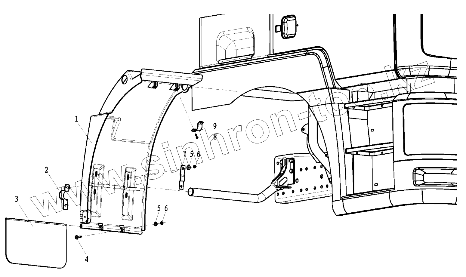 Каталог запасных частей к технике: Shaanxi Shacman F2000. FENDER RIGHT BEHIND CAB