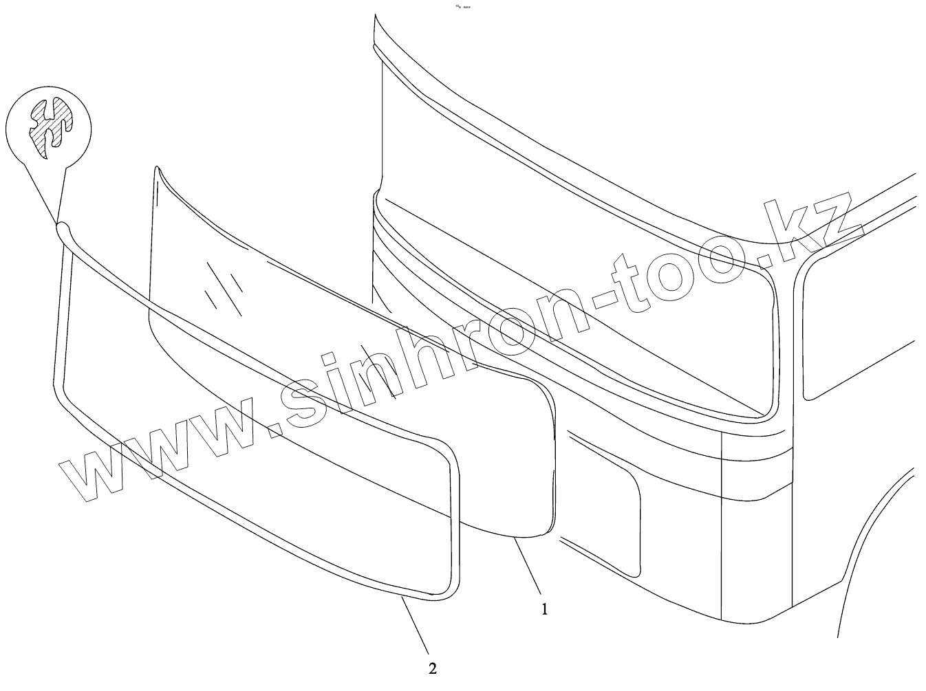 Каталог запасных частей к технике: Shaanxi Shacman F2000. FRONT WINDSHIELD GLASS ASSEMBLY