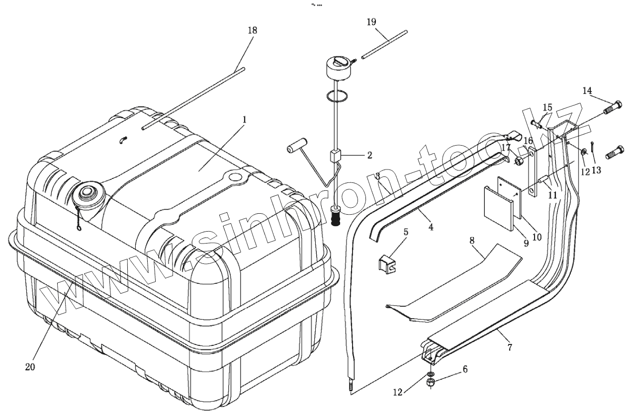 Каталог запасных частей к технике: Shaanxi Shacman F2000. FUEL TANK AND OIL LINE 380L