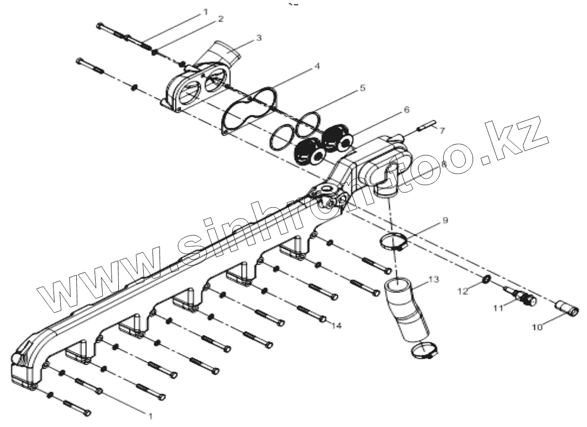 Каталог запасных частей к технике: Shaanxi Shacman F2000. WATER OUTLET PIPE GROUP (01)
