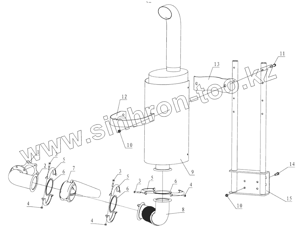 Каталог запасных частей к технике: Shaanxi Shacman F3000. EXHAUSTING AND MUFFLER (WP10 6X2)